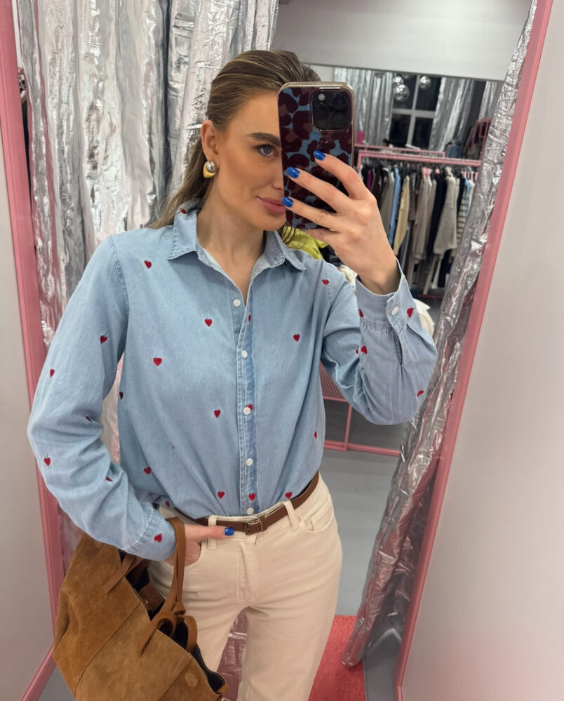Denim marškiniai su širdelėmis