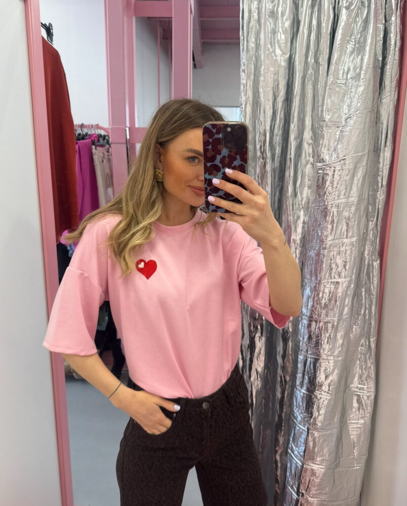 Marškinėliai su širdele baby pink