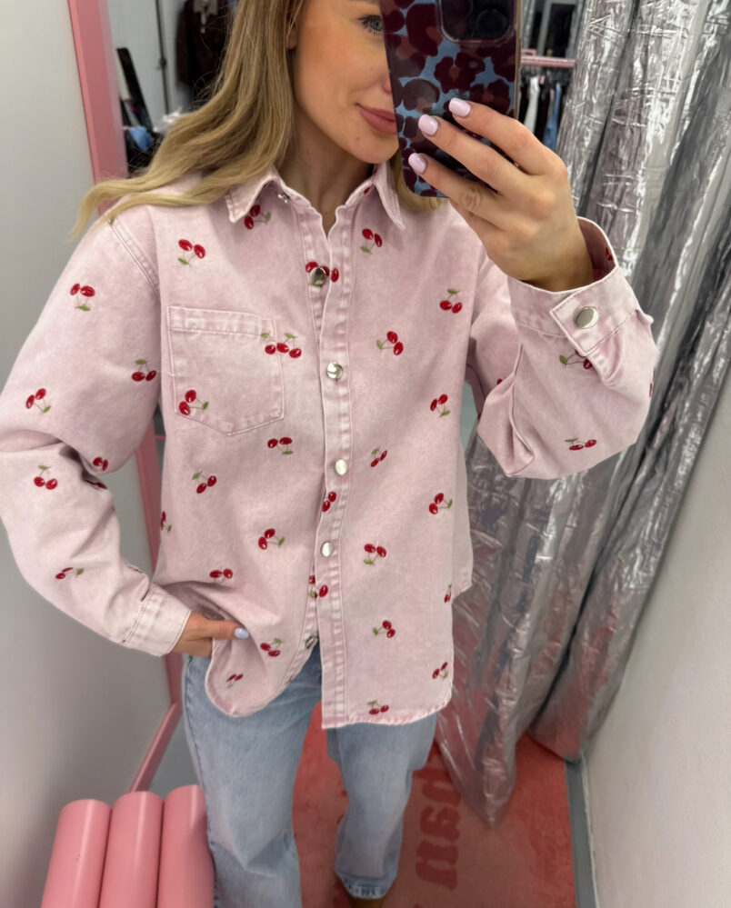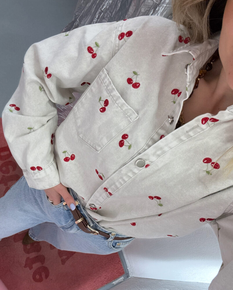 Denim marškiniai su vyšnaitėmis / BEIGE