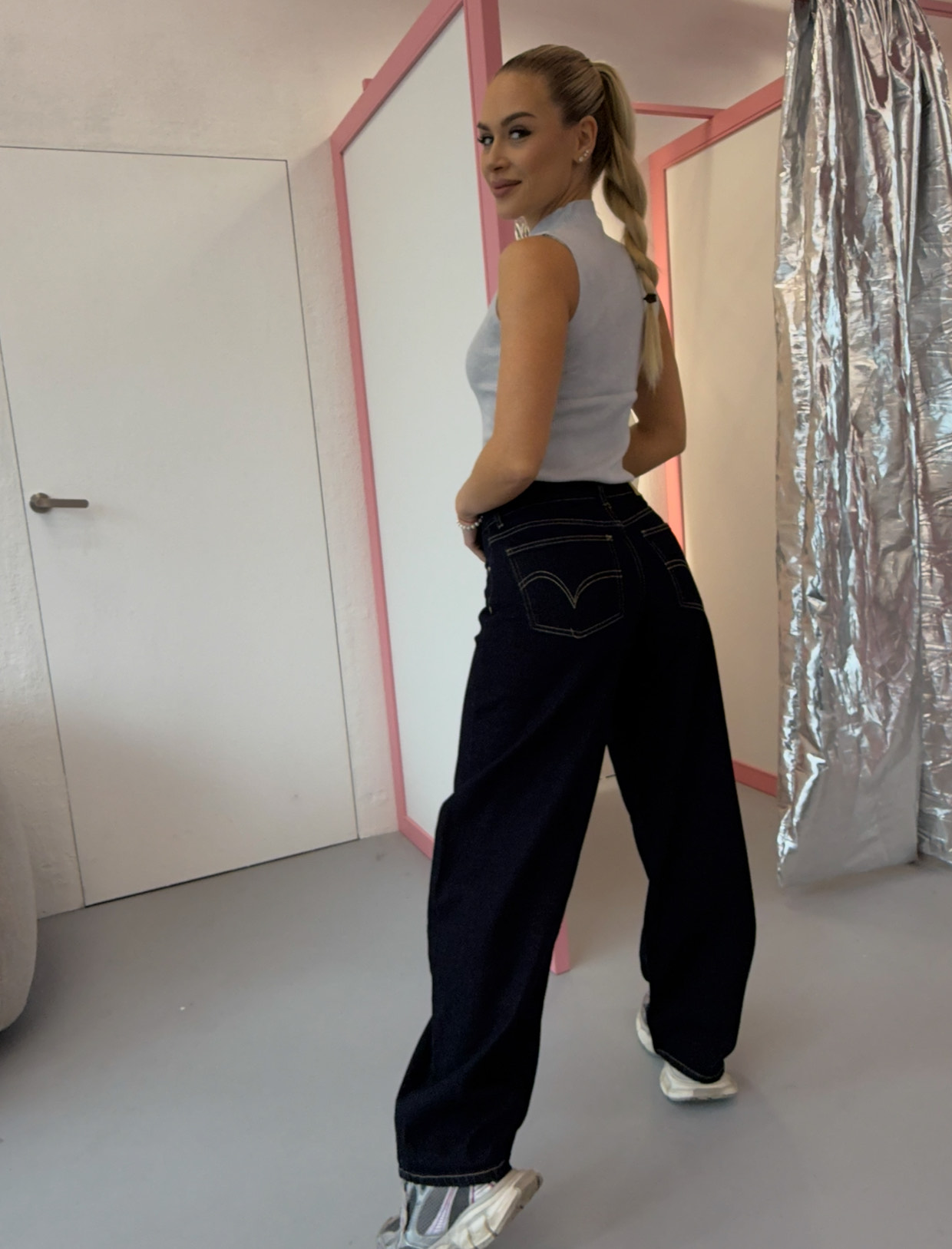 Baloon tipo džinsai tamsiai mėlyni -W3717-2