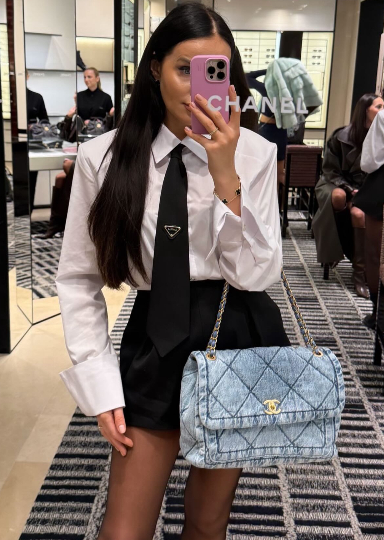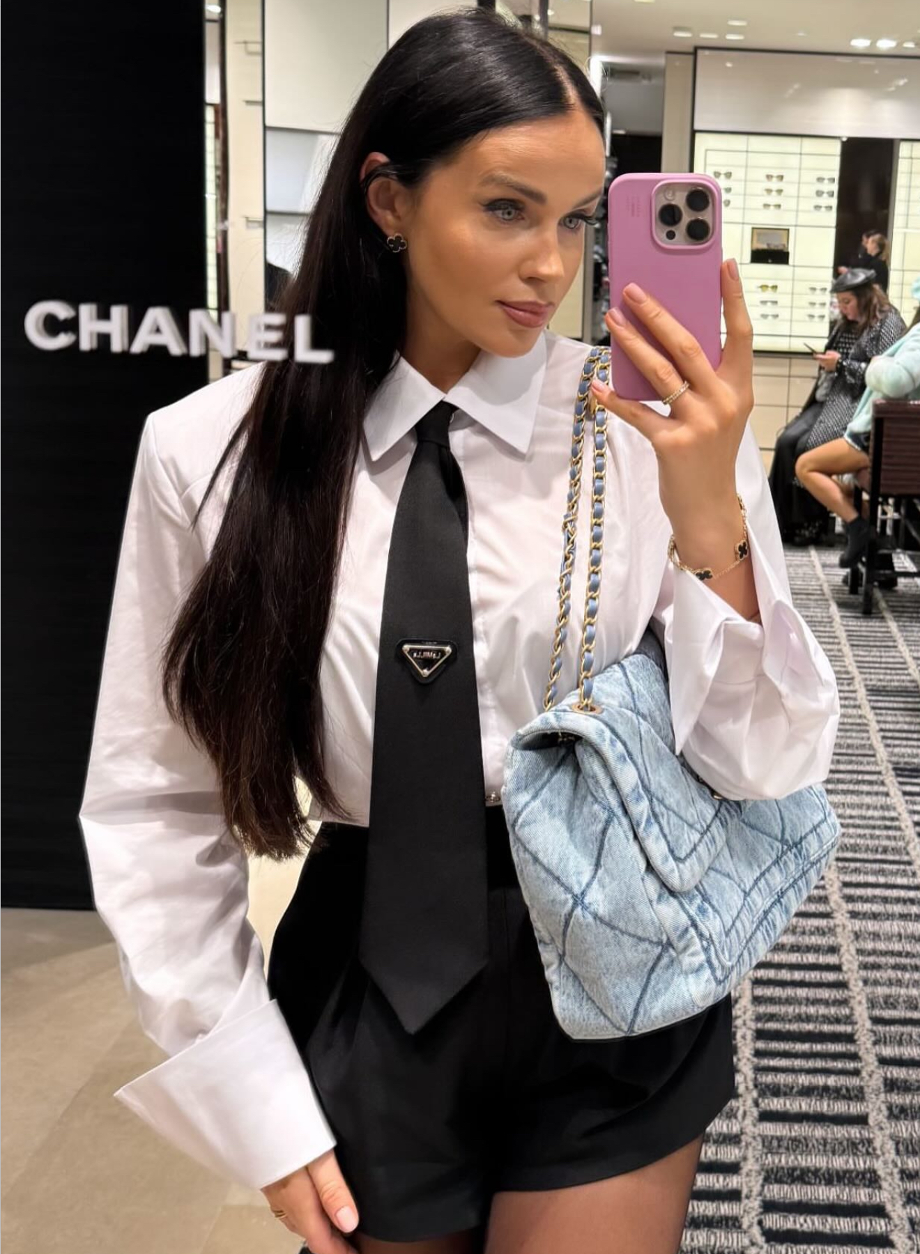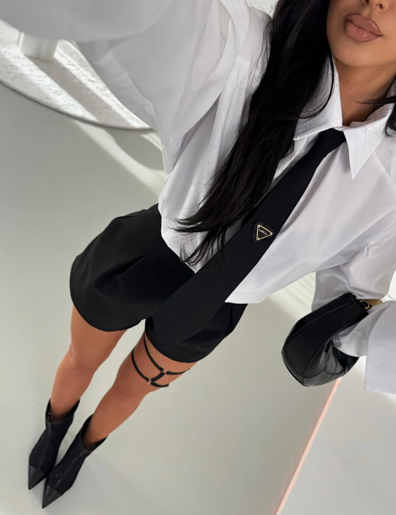 Balti marškiniai su linijom ir kaklaraiščiu