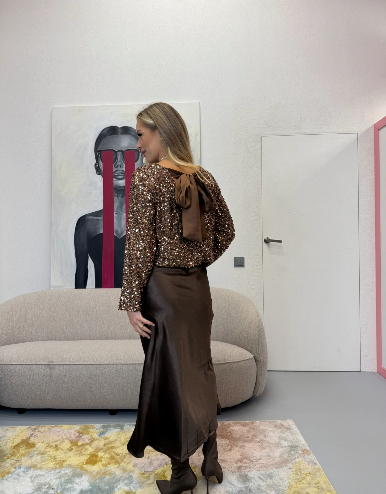 Būkite pirmas aprašęs “Blizganti ruda palaidinė su kaspinu”