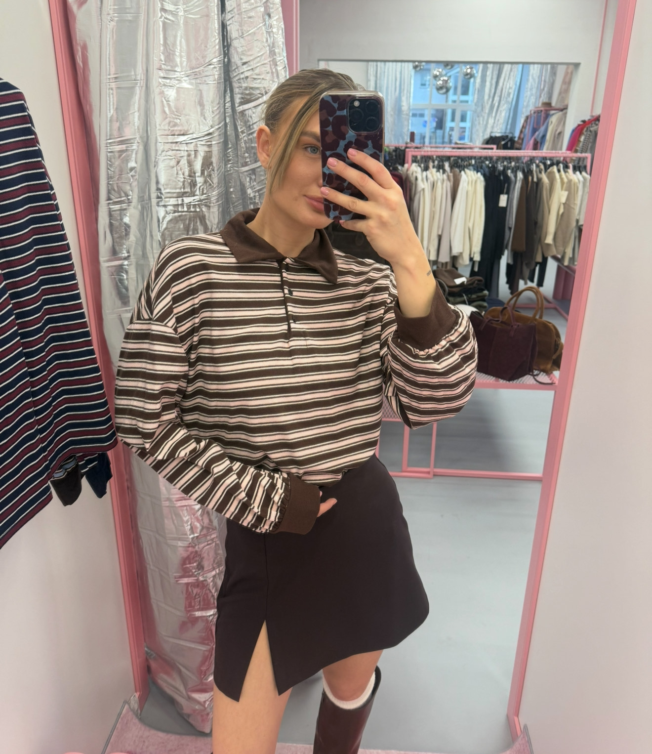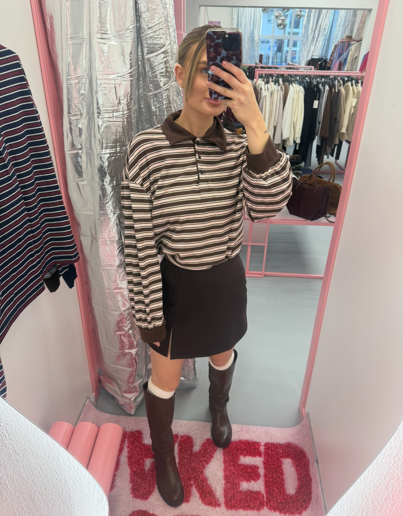 Būkite pirmas aprašęs “Dryžuotas polo basic megztininis / baby pink”