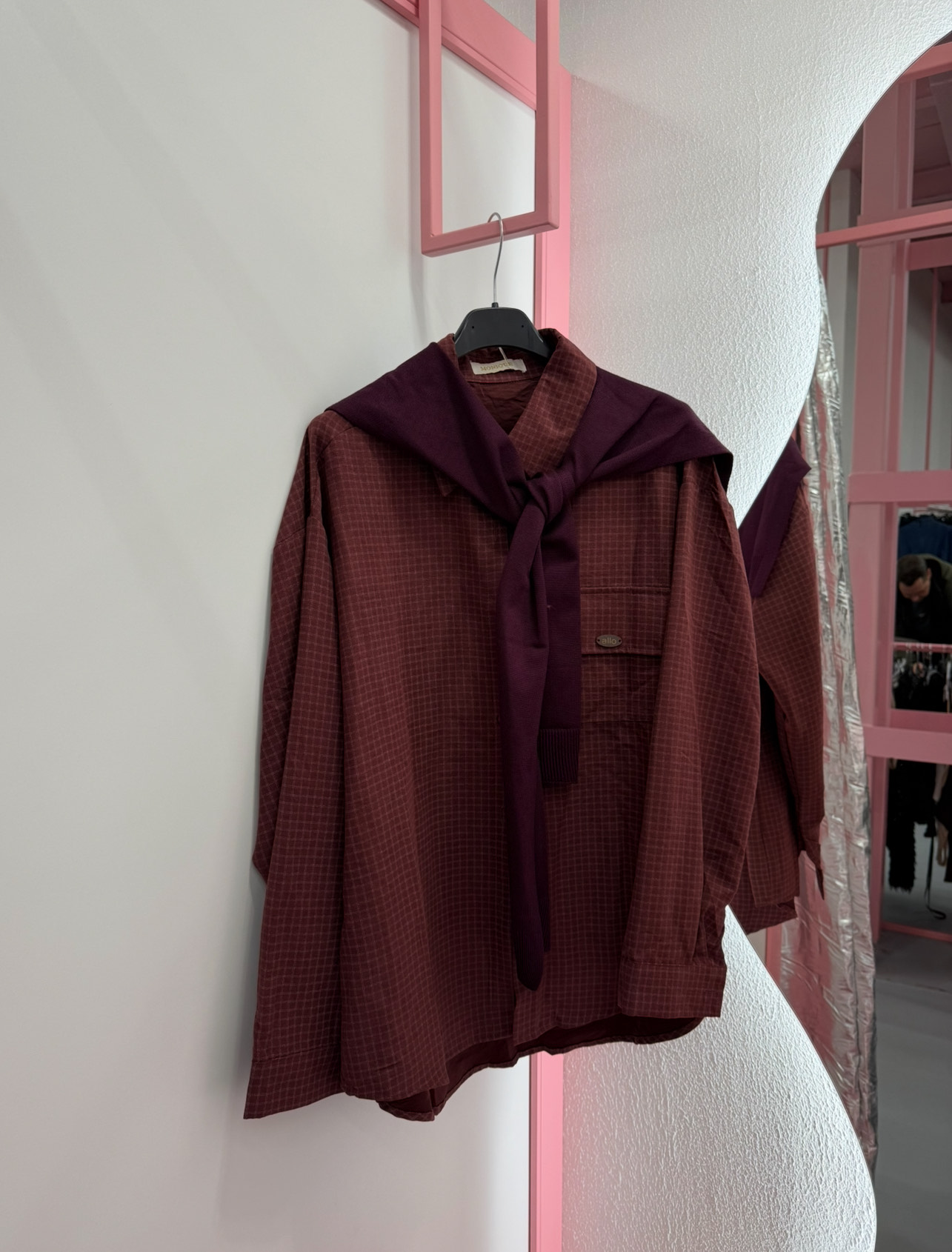Būkite pirmas aprašęs “Dviejų dalių marškiniai su dekoratyviniu audinio užmetimu / bordo”