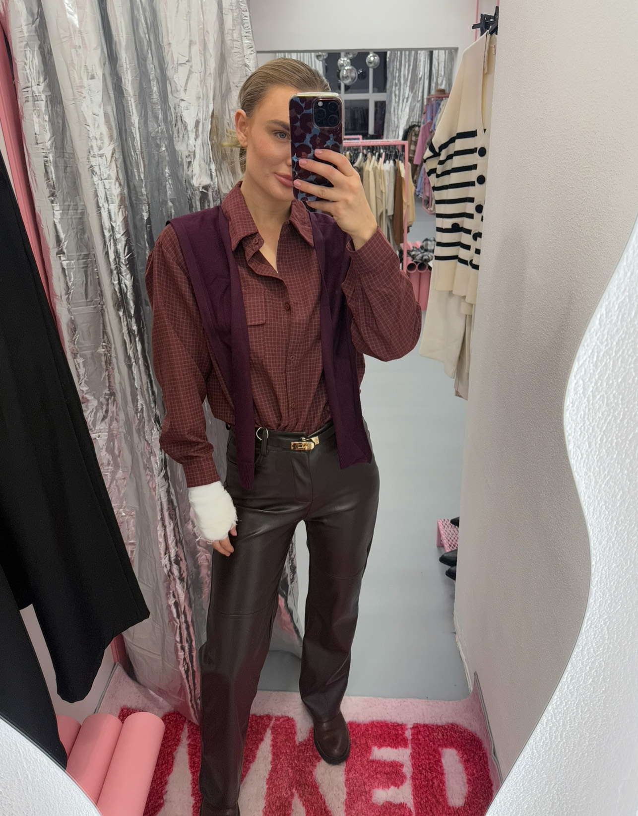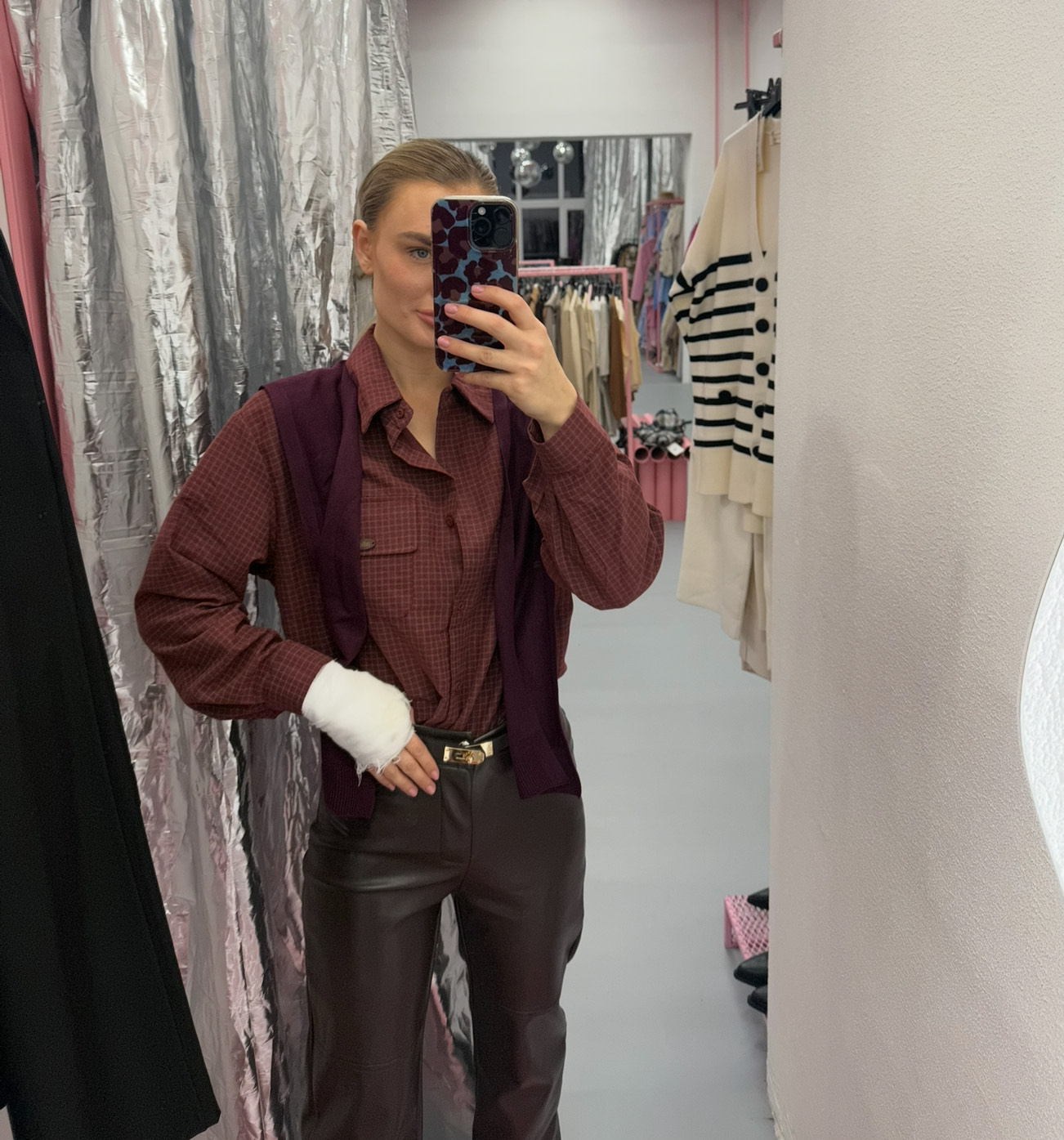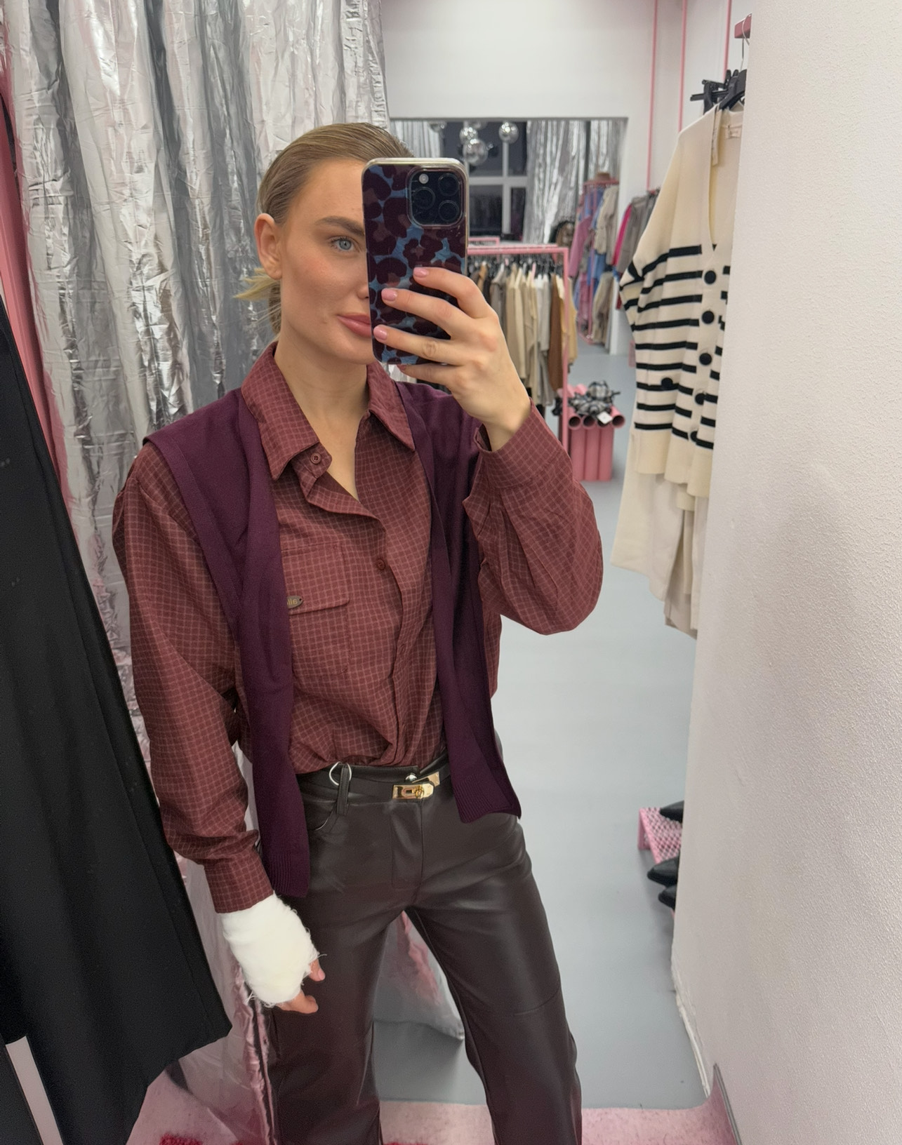 Dviejų dalių marškiniai su dekoratyviniu audinio užmetimu / bordo