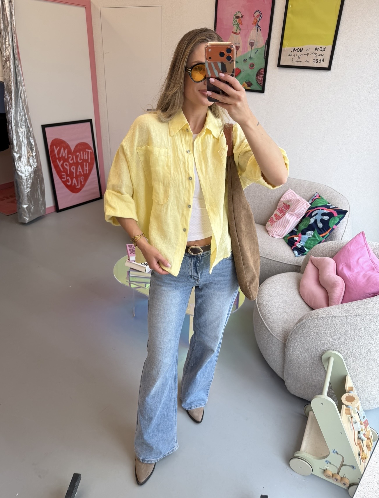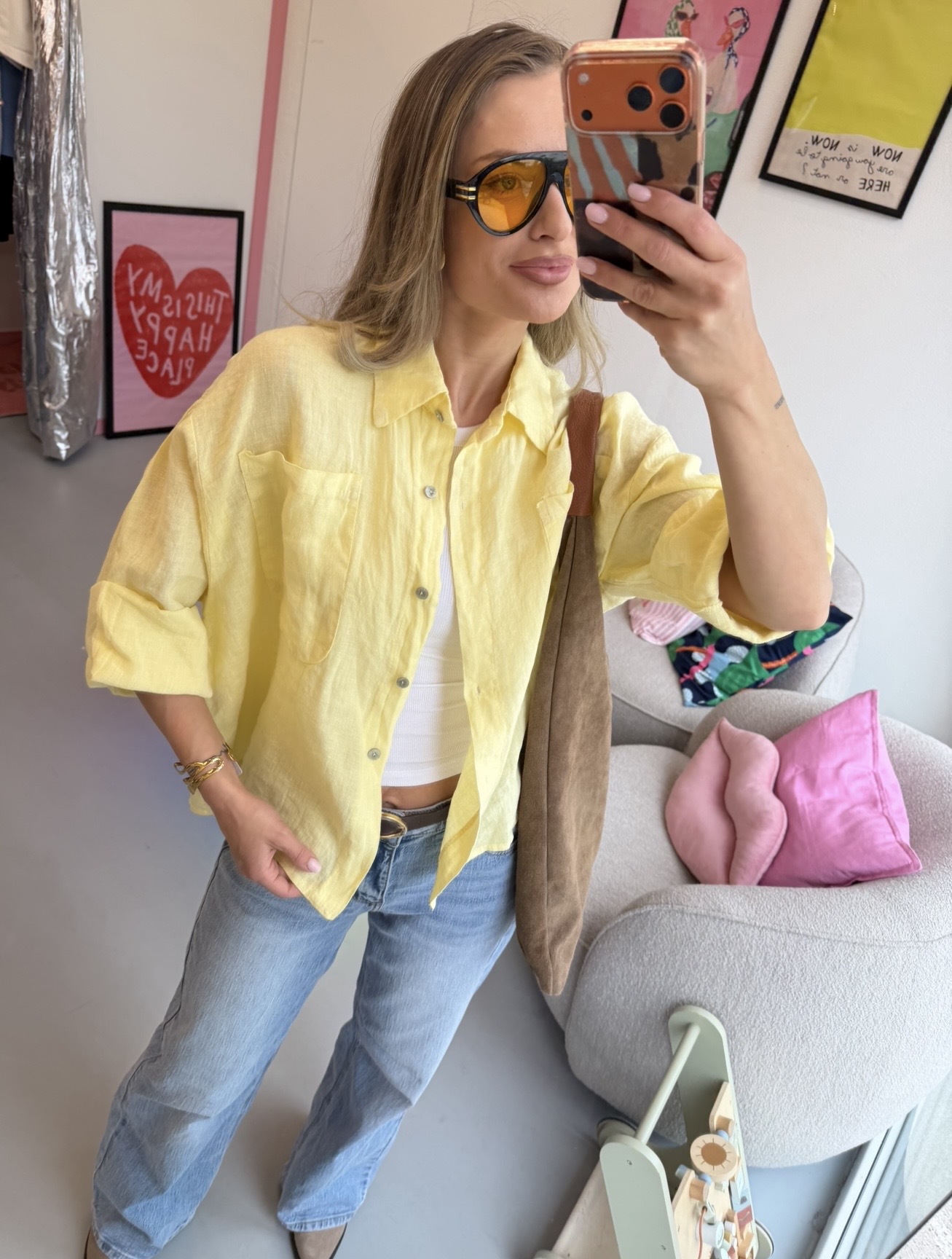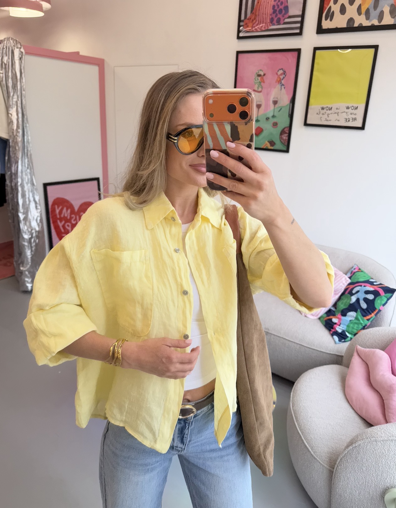 Geltoni lino marškiniai / lino
