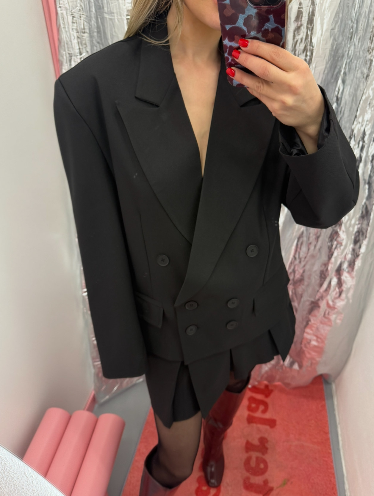Būkite pirmas aprašęs “Juodas oversize švarkas su petukais”