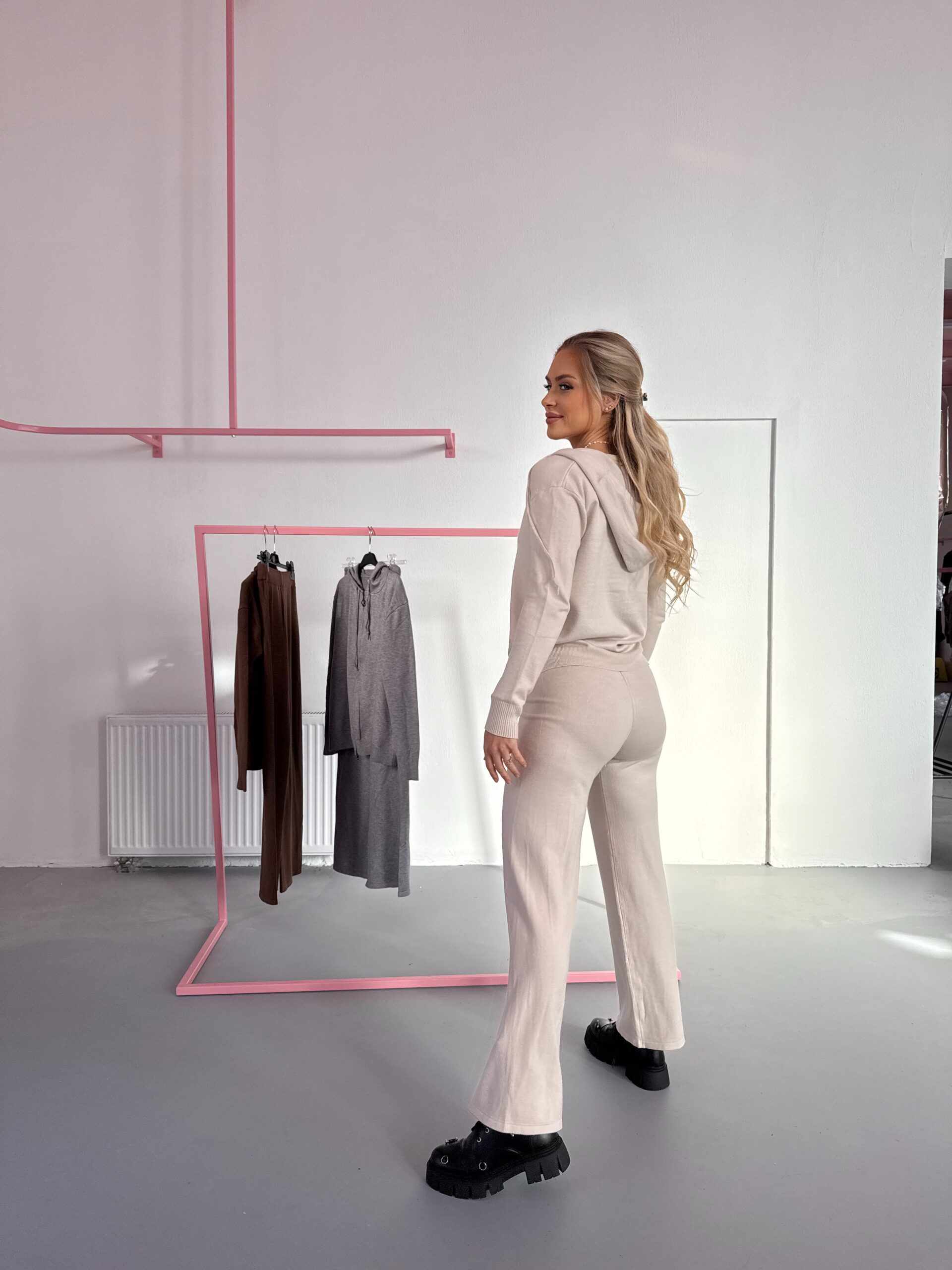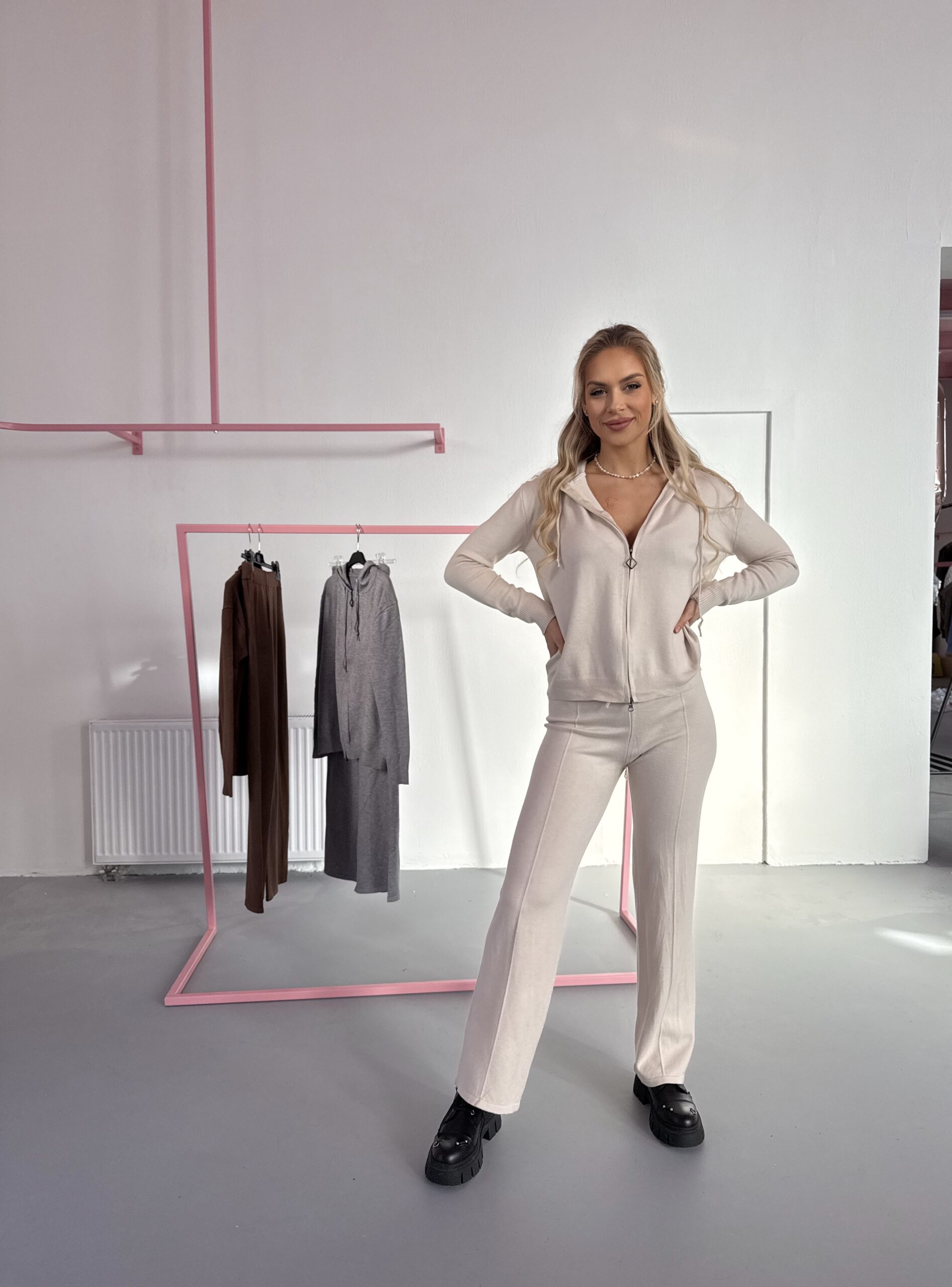 Kelnės: liemuo guma, tempiasi iki 39x2cm, klubai iki 50x2cm, visas ilgis 103cm.