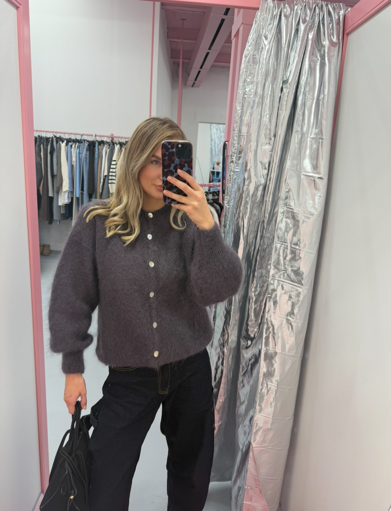 Būkite pirmas aprašęs “Pilkas megztinis su mohera ir sagomis”