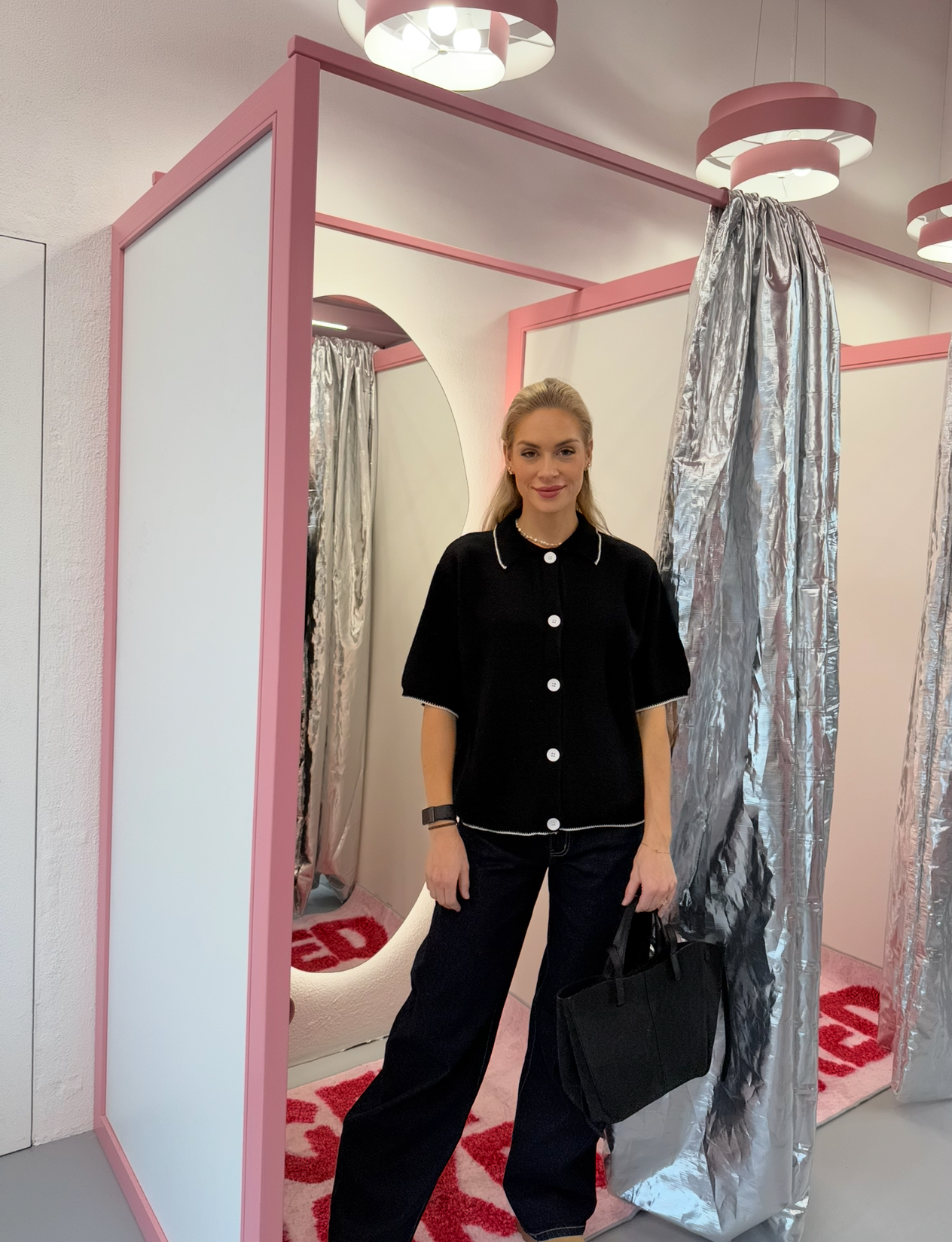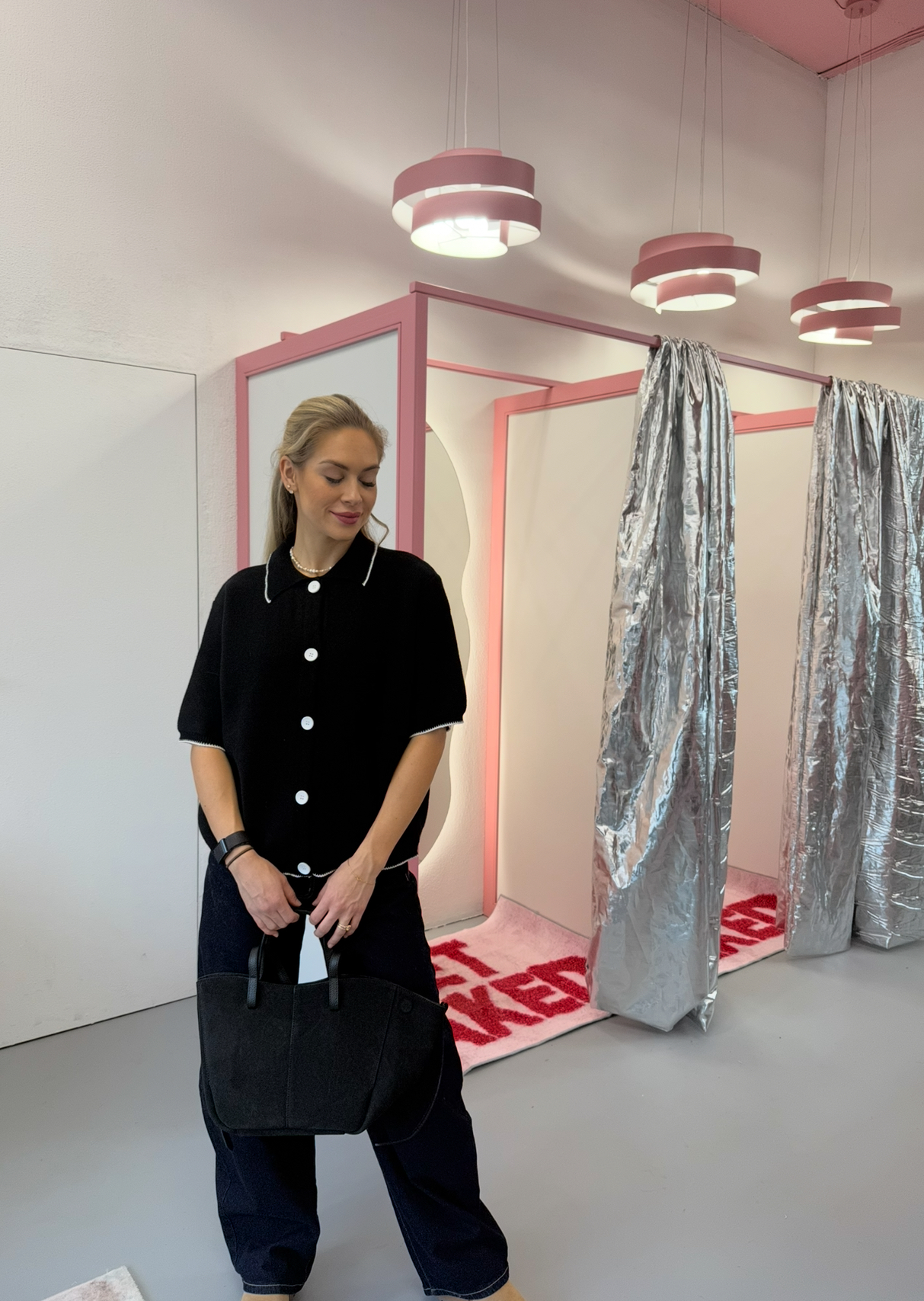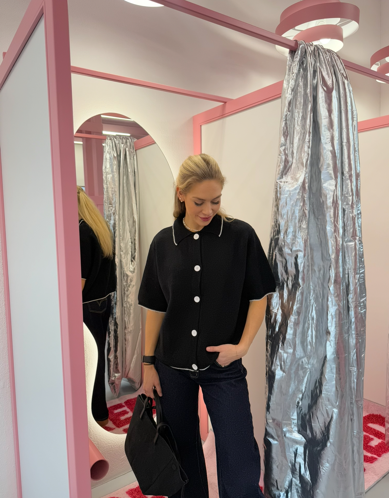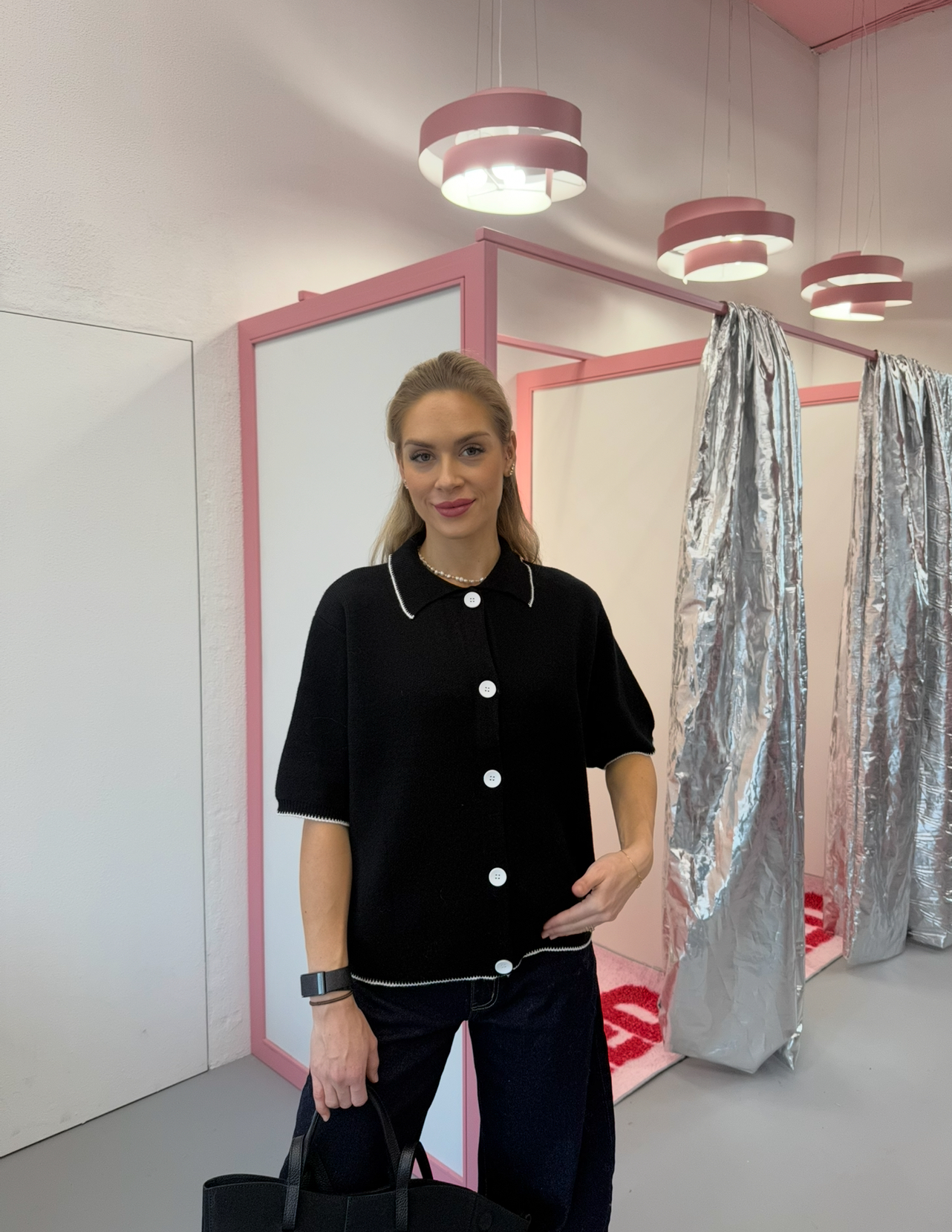Būkite pirmas aprašęs “Polo megztinis juodas su viskoze ir apvadu”