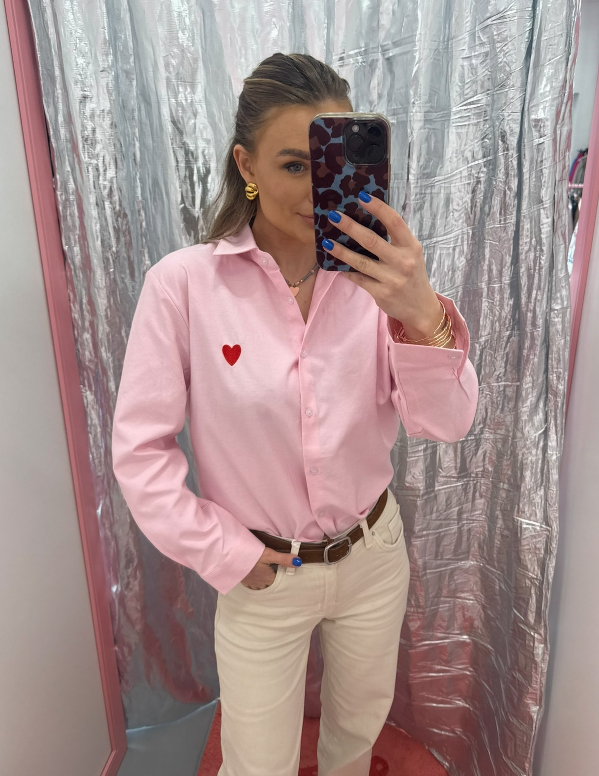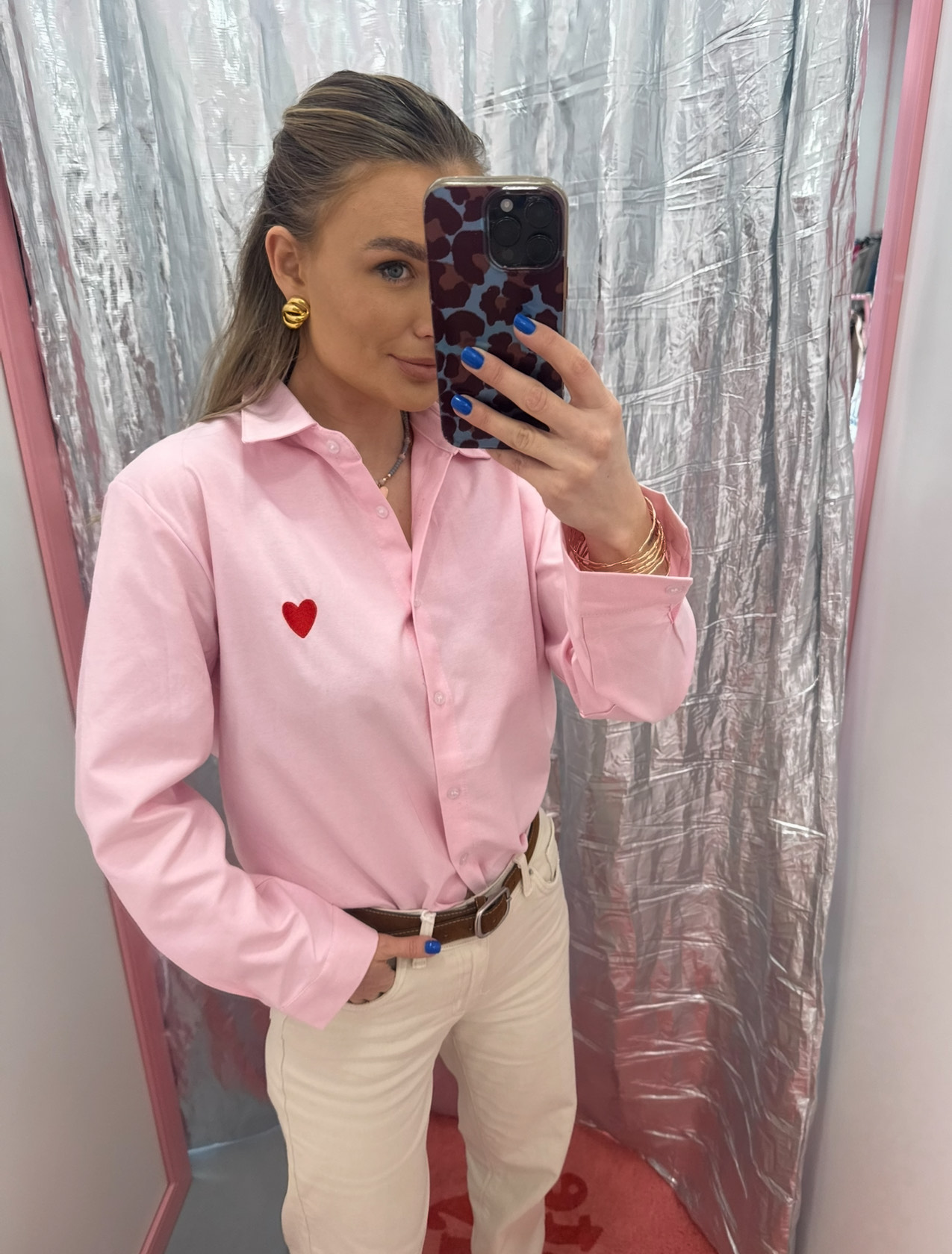 Rausvi marškiniai su širdelė