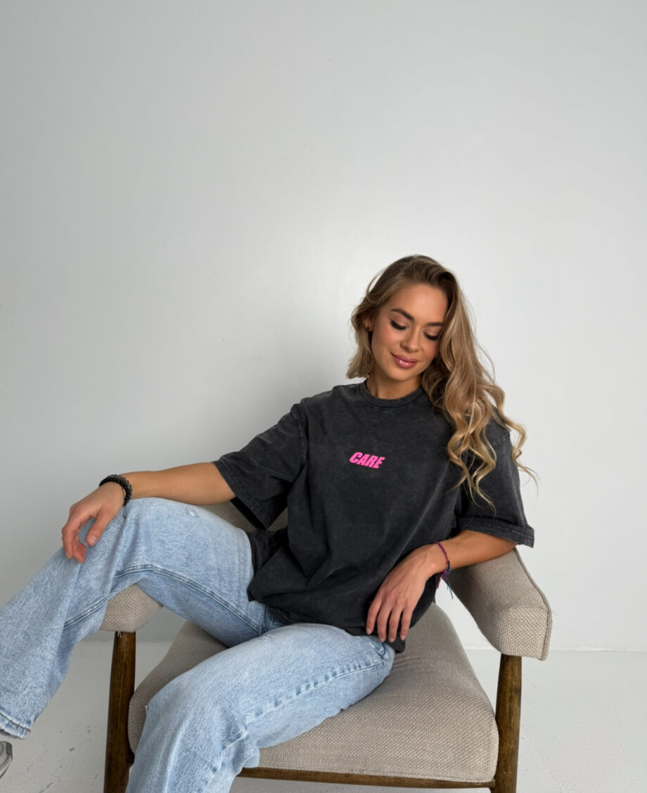 Tamsiai pilki marškinėliai Care
