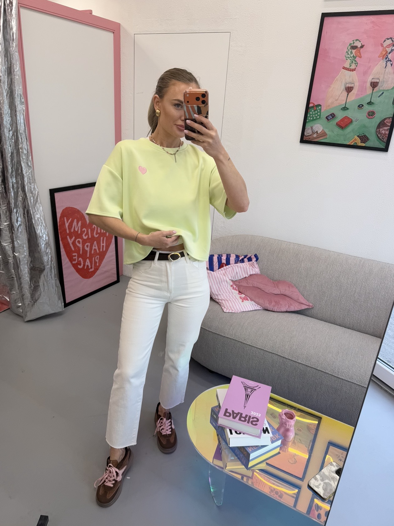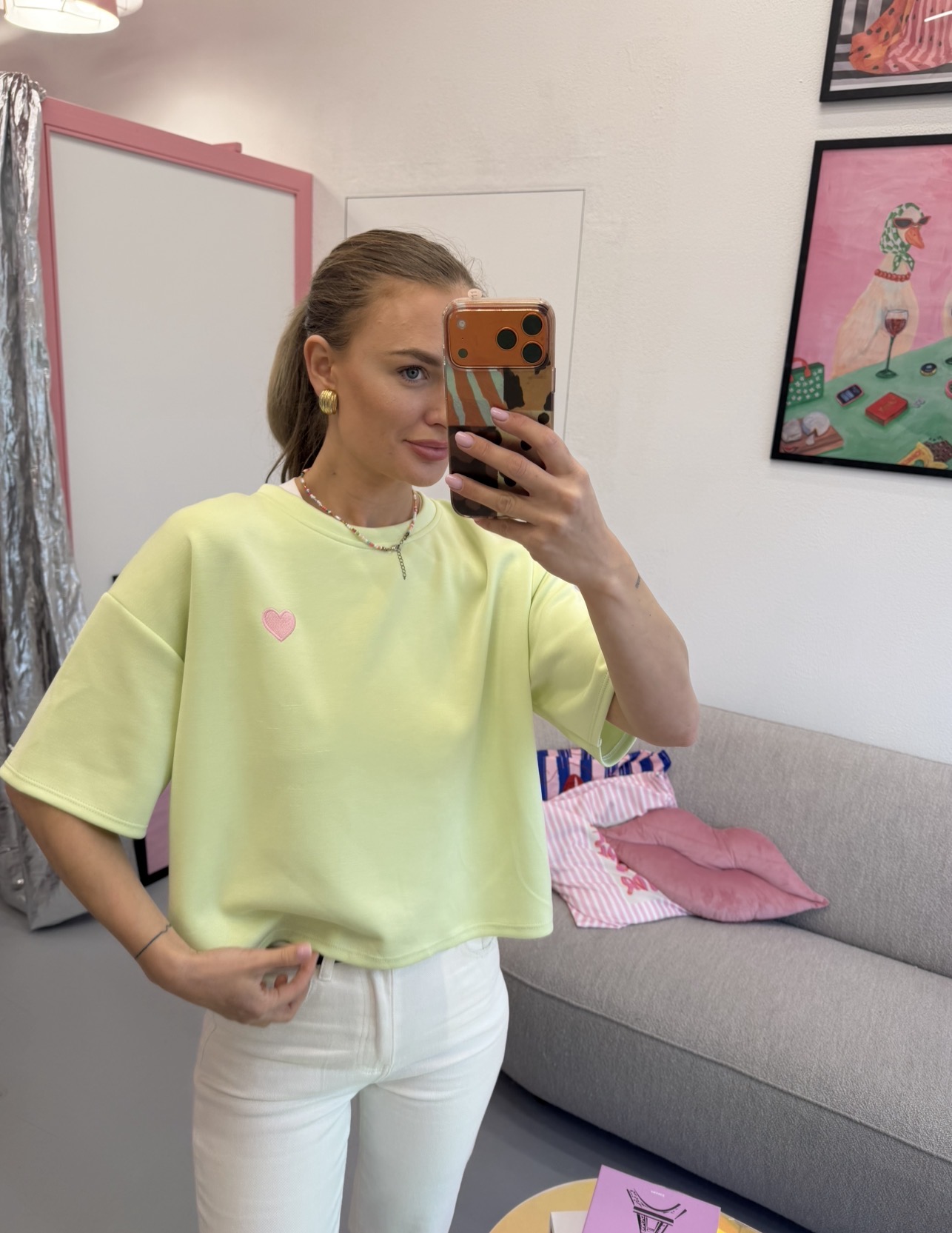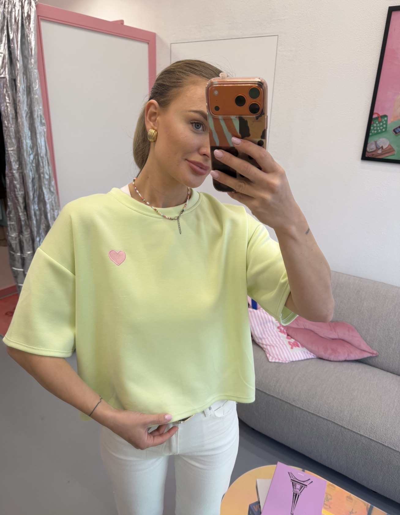 Būkite pirmas aprašęs “Žaliai geltoni marškinėliai su širdėle / cute”