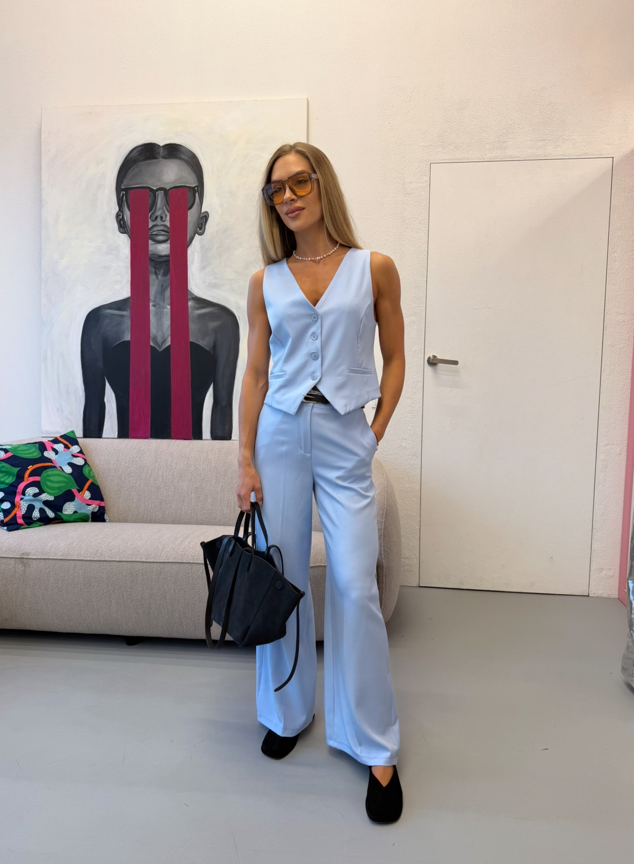 kelnės: liemuo 36x2cm, klubai 51x2cm, visas ilgis 103cm.
