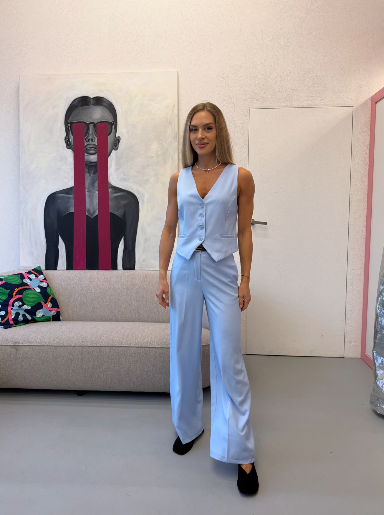 kelnės: liemuo 40x2cm, klubai 53x2cm, visas ilgis 104cm.