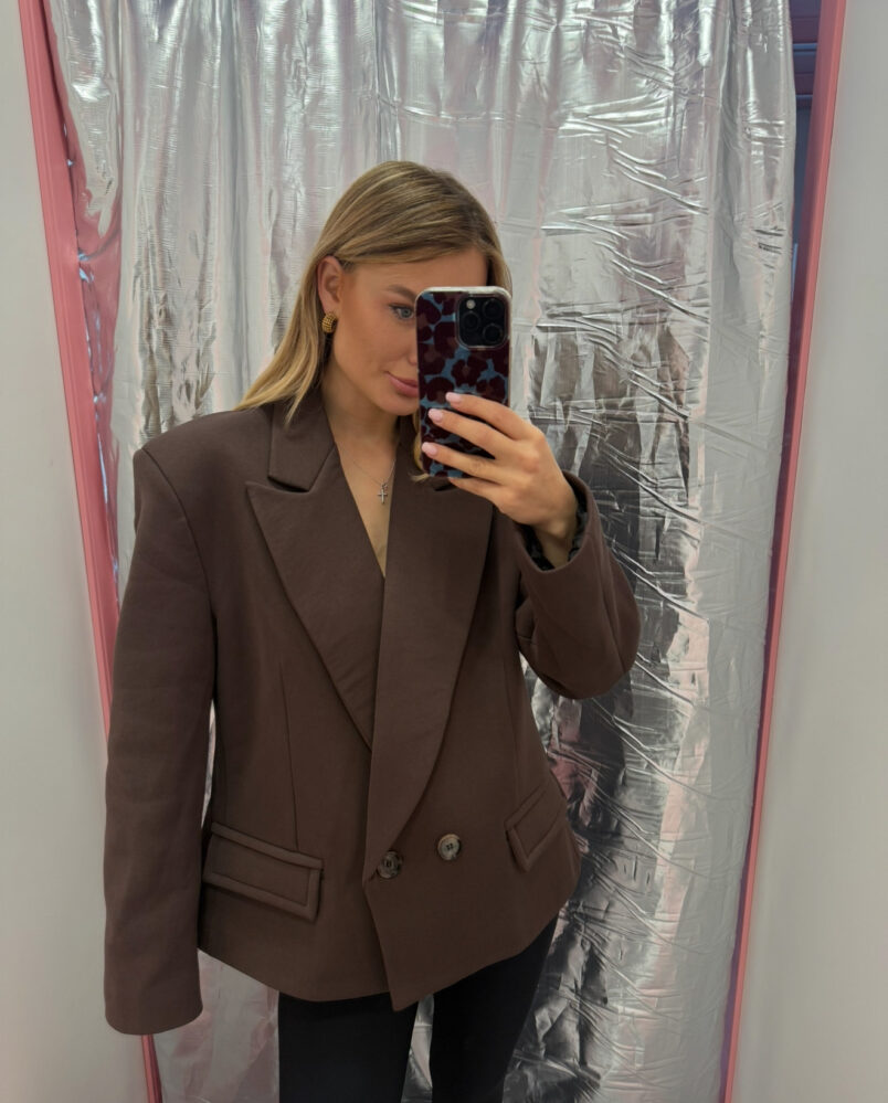 Šokoladinis oversize švarkas su petukais