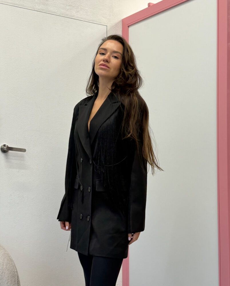 Juodas kokybiškas švarkas/suknelė su kutosiukais