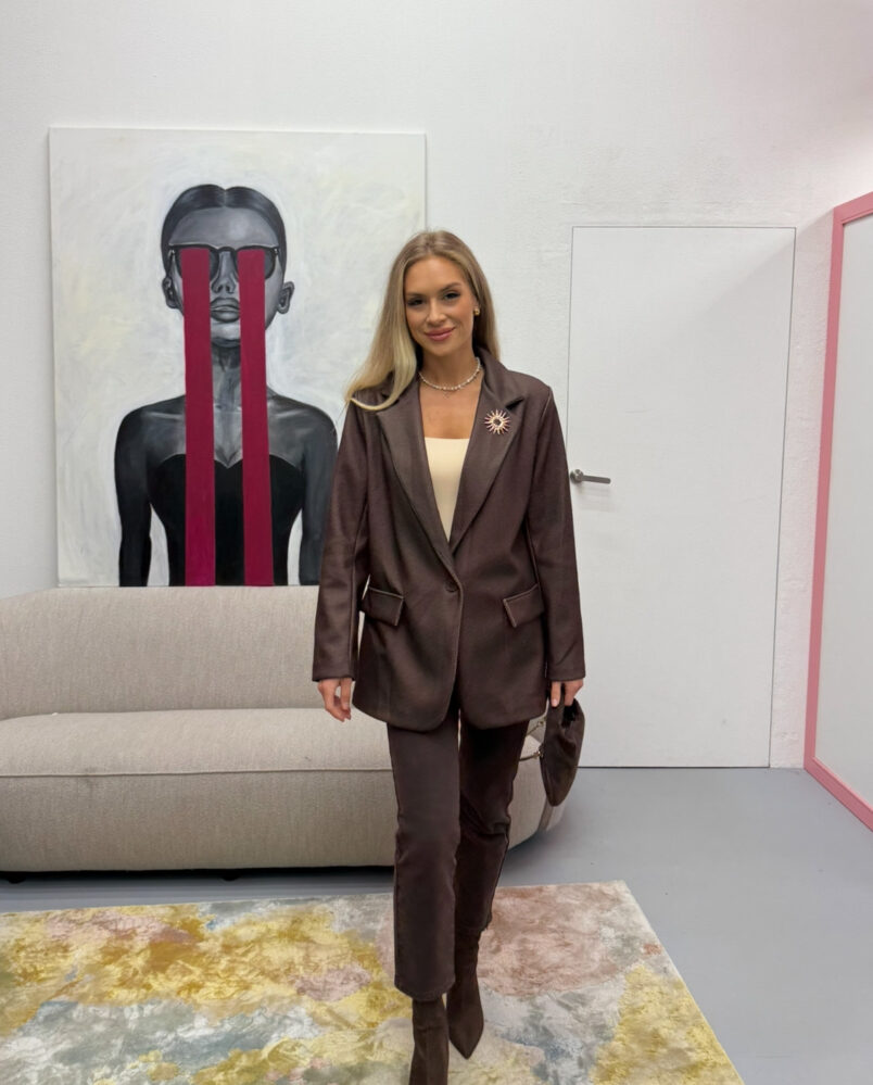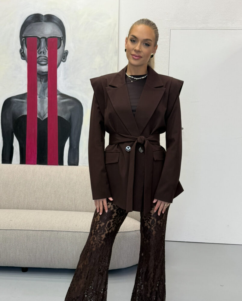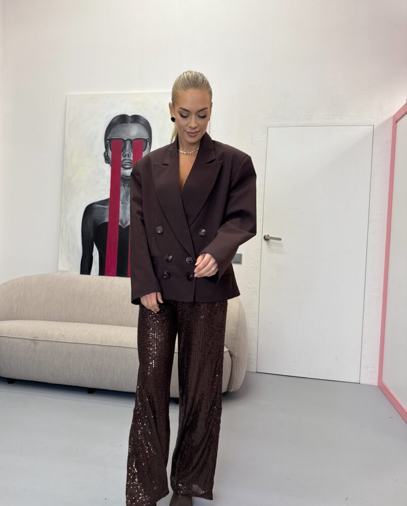 Šokoladinis oversize švarkas su širdelėmis