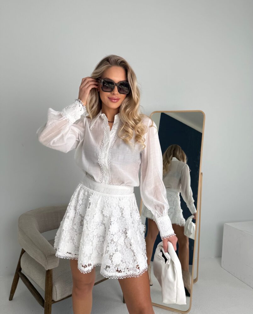 Baltas, megztas 2 dalių kostiumėlis