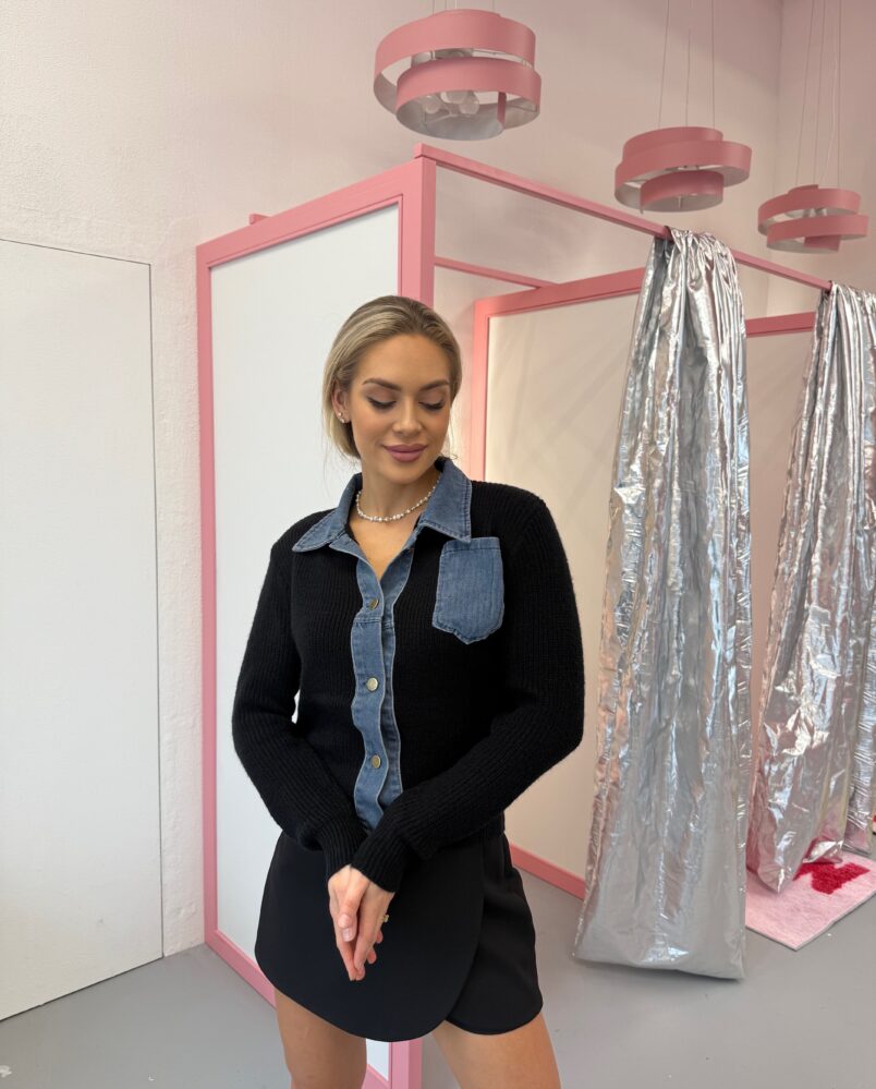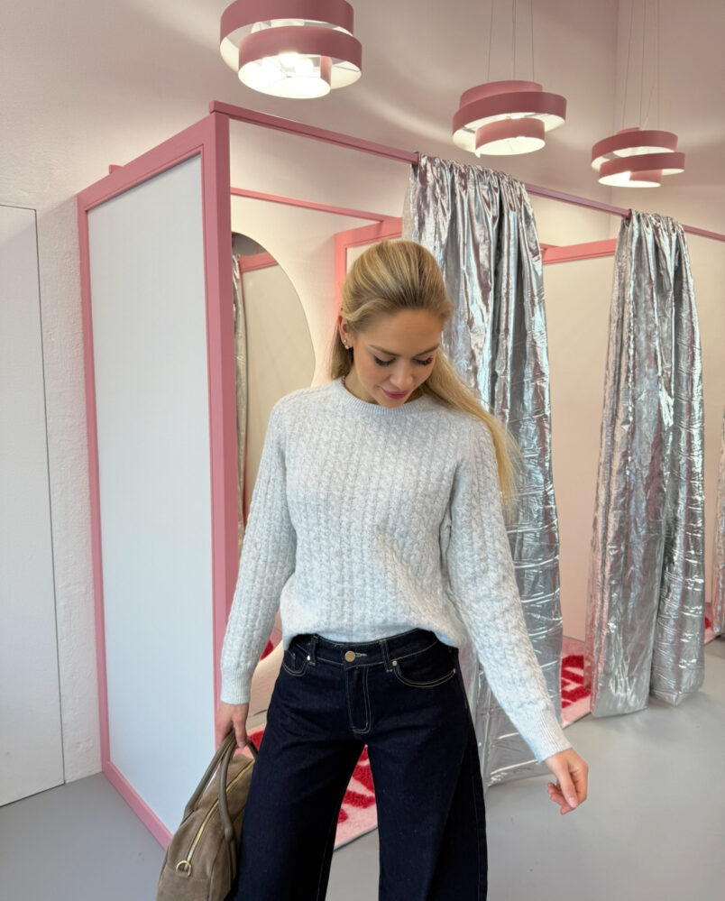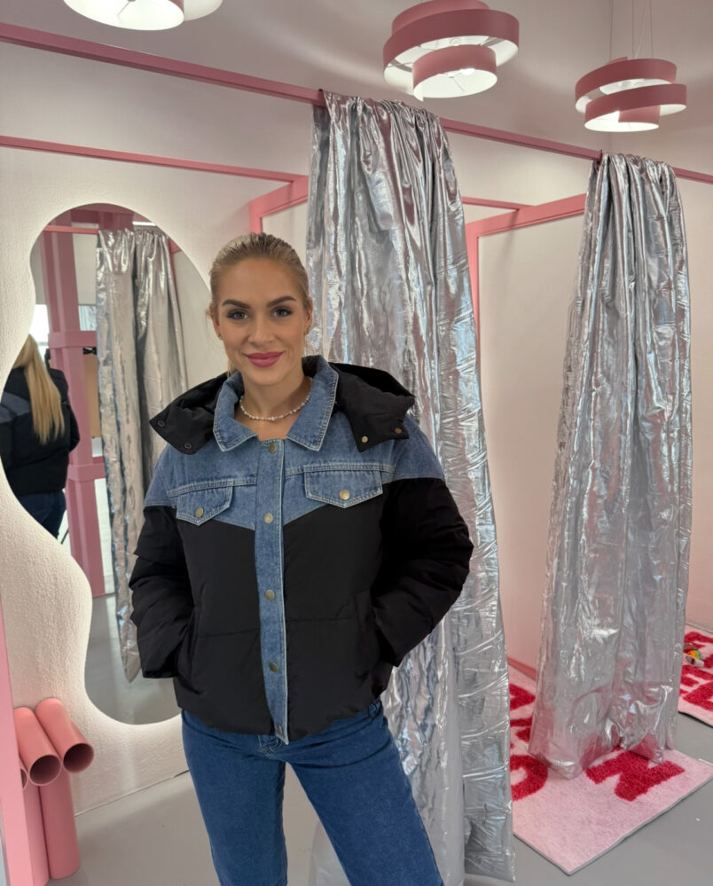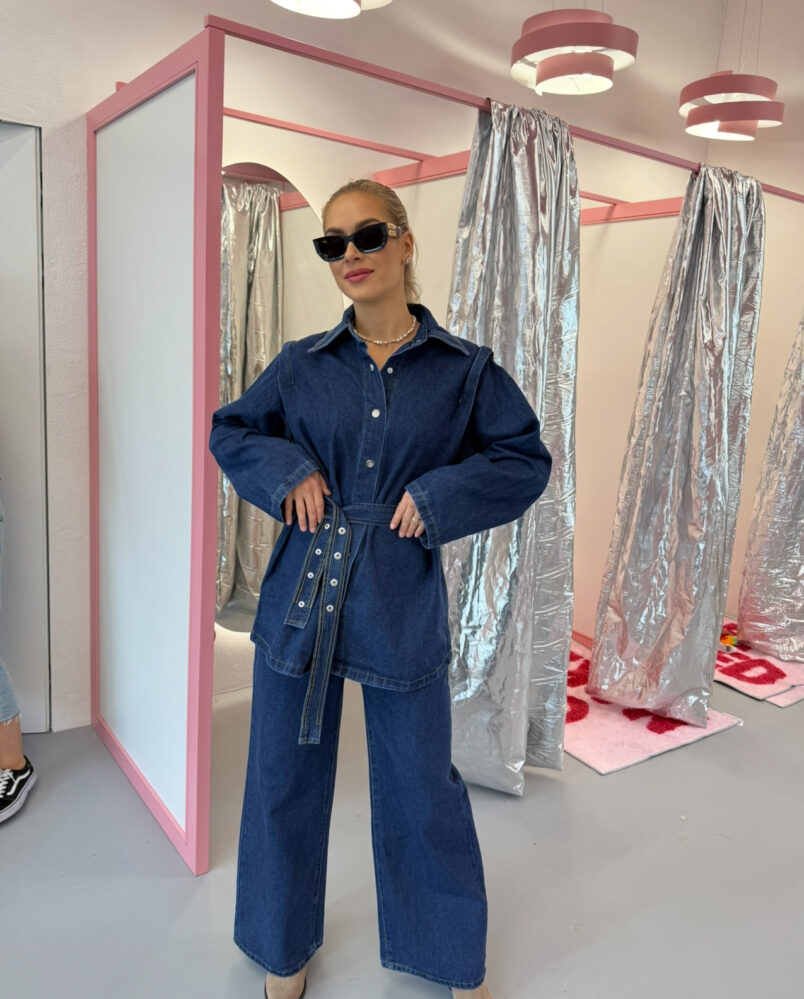 Melsvi, tiesaus kirpimo džinsai su gėlytėmis